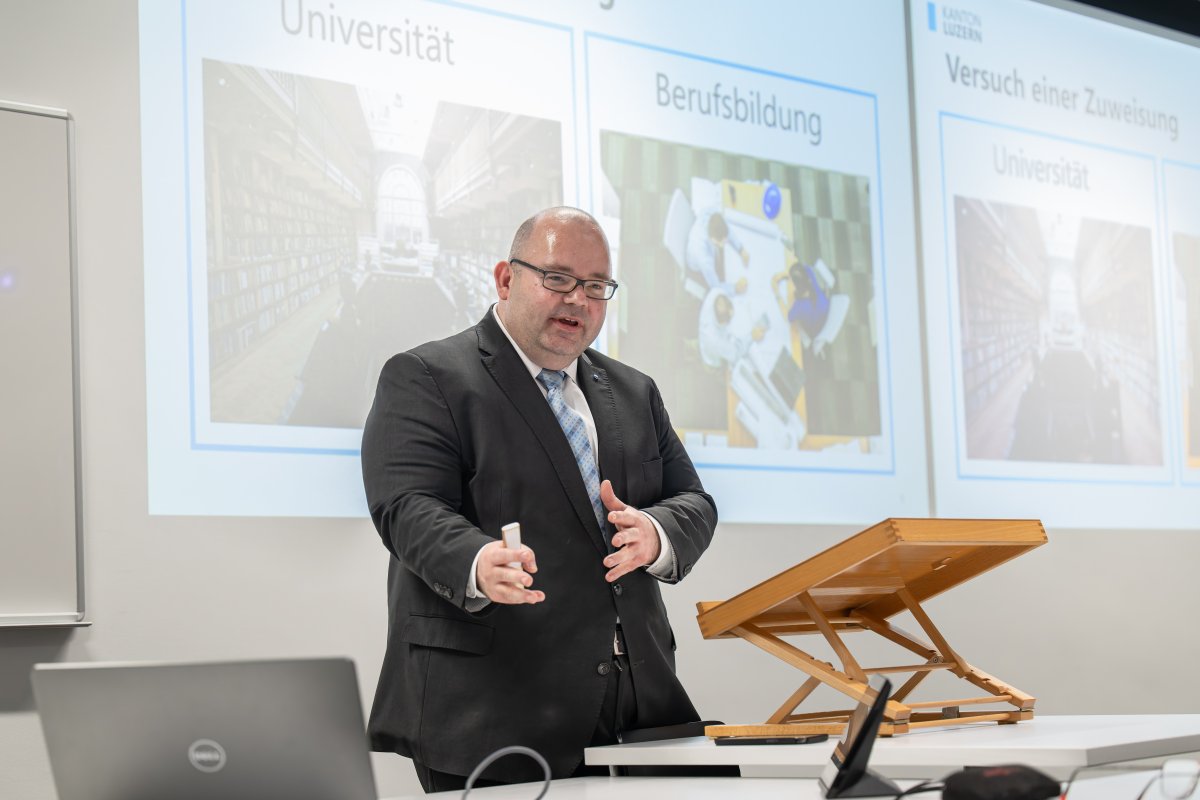 Drei Vorträge zeigten, dass Berufsbildung und akademische Bildung einerseits zwei verschiedene Zugänge zur Wissensvermittlung bieten, anderseits sie die gemeinsame Herausforderung vereint, die Menschen von heute auf die Welt von morgen vorzubereiten. Die Referierenden waren sich einig, dass beide Systeme durch einen Austausch nur profitieren können – egal, ob der Arbeitsmarkt der Zukunft aus Solarinstallateuren, Gebäudehüllenplanerinnen oder bislang noch nicht existierenden Berufen besteht.